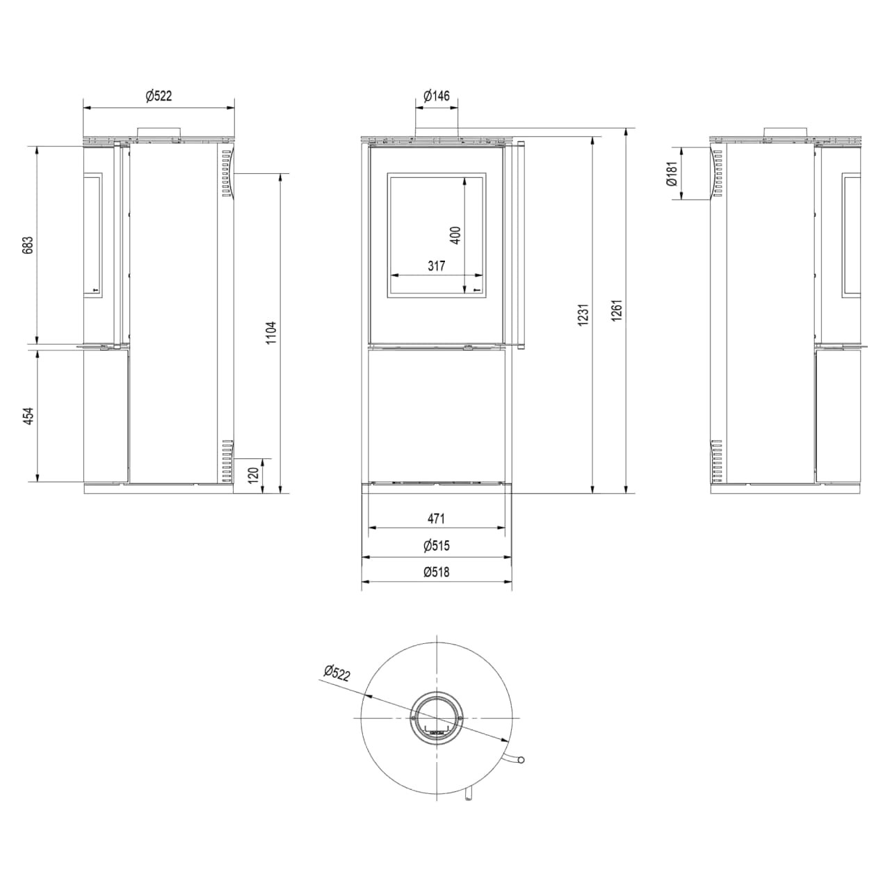 Польська піч-камін на дровах сталева Kratki SVEN Ø 150